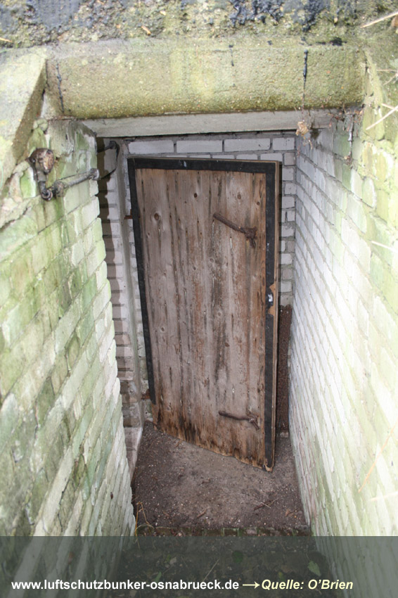 Die Länge des Grabens beträgt 8 Meter. Die Eingangsschleuse ist mit zwei Druckschutztüren aus Holz, "Marke Eigenbau", ausgestattet. Die Türen besitzen jeweils zwei Stahlriegel und Dichtungen an den Türrändern. Der Deckungsgraben war mit Beleuchtung ausgestattet. Der Notausstieg ist vermauert. Insgesamt befindet sich das Objekt in einem guten Zustand. Die Anlage steht in Privateigentum des anliegenden Hofbesitzers, dem unser Dank für die Begehung gilt.