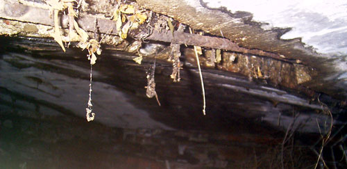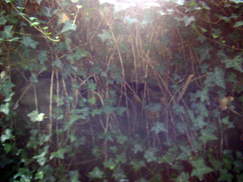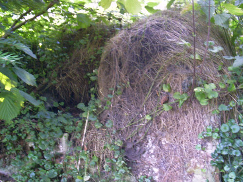 Zu sehen ist ein Teil des halbrund gemauerten Sturzes des ehemaligen Einganges...