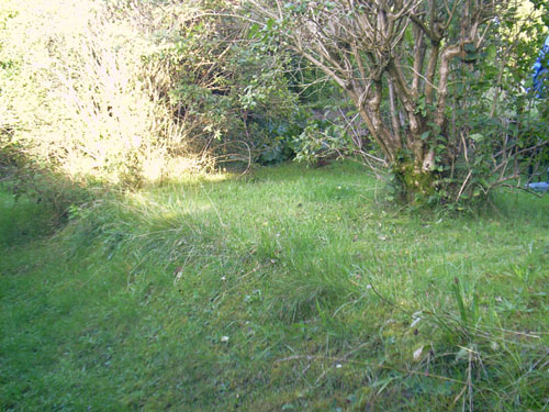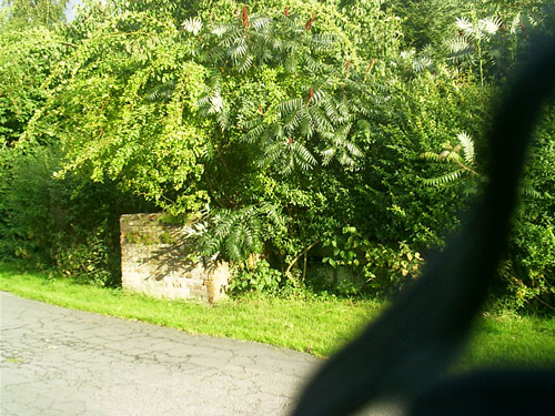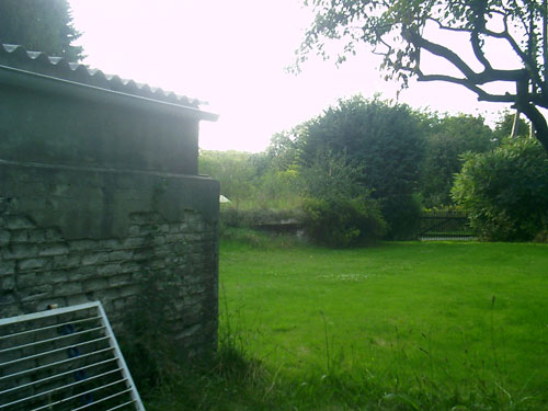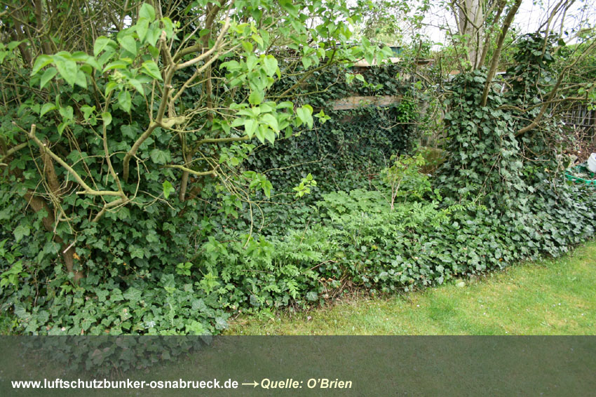 Fußweg zwischen Feldstraße und Karstweg / Garten neben Flakgebäude / Mauer...