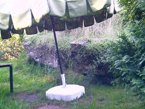 Nachtrag 03.05.10: In einem Garten auf dem Kalkhügel wurden weitere Betonreste aufgefunden, die höchstwahrscheinlich im Zusammenhang mit der Flak Kalkhügel stehen: