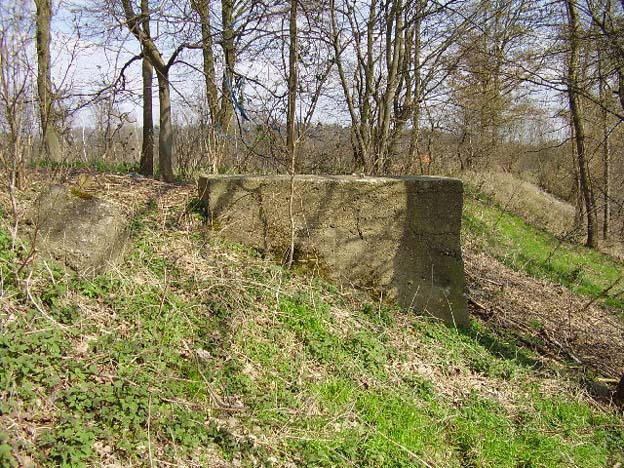 Diese Betonobjekte sind Überbleibsel eines so genannten "Flaksternes". Er befindet sich circa 100 Meter von der großen Schleuse entfernt.