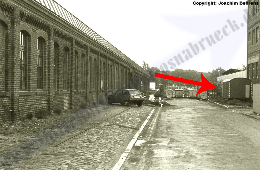 Drei Aufnahmen des Karmann-Geländes aus dem Jahre 1990. Auf zweien ist eindeutig der Bunker zu sehen. In Aufnahme 4 befindet er sich direkt hinter dem dort erkennbaren Bauwagen: