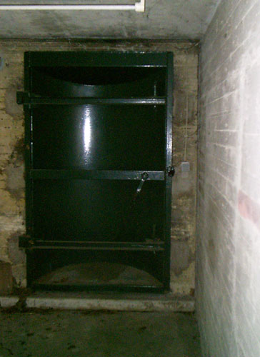 Auch der obige ist einer von mehreren neuen Eingängen in den ehemaligen, damals modernen "Atomschutzbunker" des (damaligen) Bundeswehrkrankenhauses in Osnabrück. Dieses Schutzgebäude wird heute von der Stadt und dem Klinikum Osnabrück als Archiv und Lagerräumlichkeit für soziale Organisationen genutzt. Die Bunkeranlage umfasst einen 1-geschossig errichteten Anlagenbereich, welcher sich unter dem gesamten darüber liegenden Gebäude ausdehnt. Die Anlage ist in Teilen noch funktionsfähig.