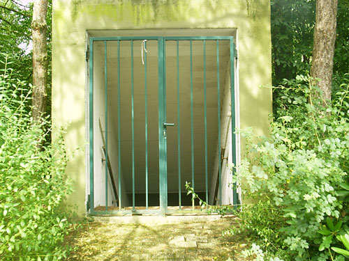 Dies ist ein Originaleingangsbauwerk des ursprünglichen LS-Stollens. Viele der hier gezeigten weiteren Verbunkerungen wurden im Zusammenhang mit der Wiederherrichtung und groß angelegten Erweiterung während des "Kalten Krieges" errichtet.