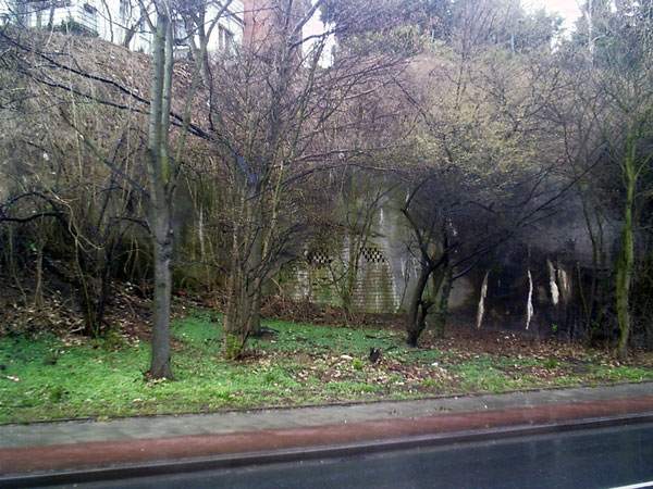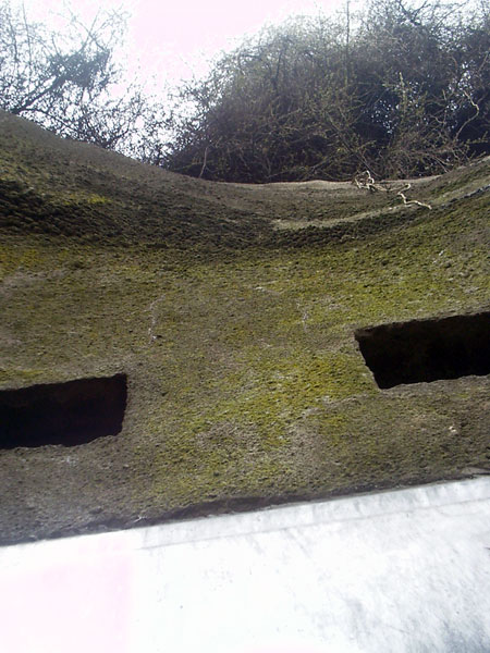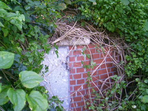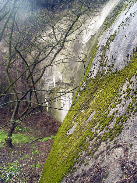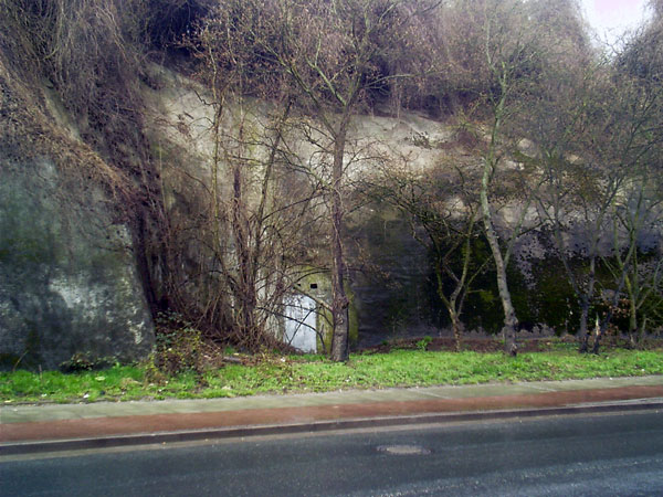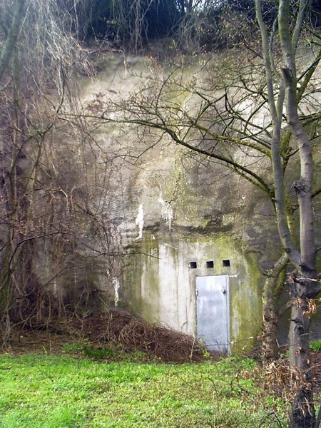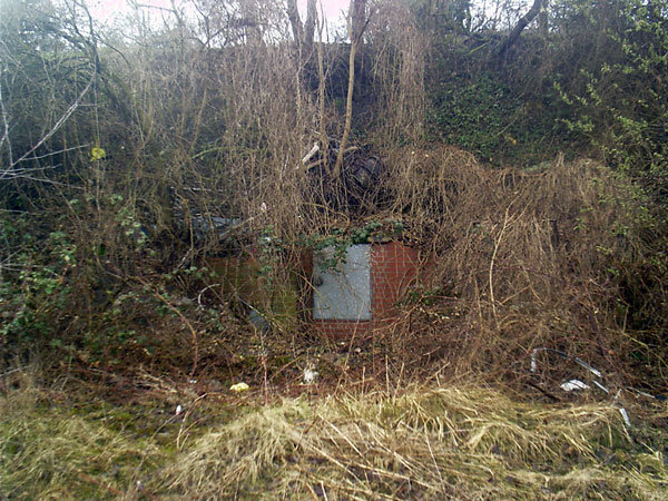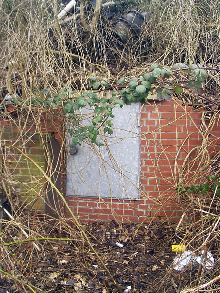 Einen zusätzlichen dritten Eingang (eventuell auch Notausstieg) könnte das folgende Objekt dargestellt haben. Die Luke selbst und die Klinkerung scheinen jedoch neueren Datums zu sein. Das Objekt befindet sich an den Bahnschienen in Nähe der anderen Eingänge: