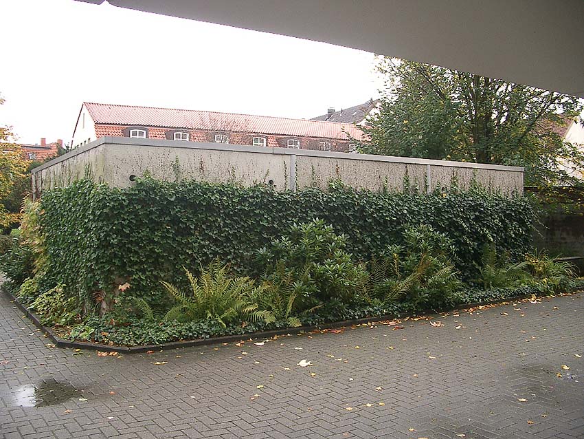Der Dortmunder Bunker vor seinem Um- und Überbau... Das Gelände ist leicht abschüssig, sodass im Vorderbereich des Bauwerkes ein kleiner Bereich des Kellers über Erdgleiche liegt.