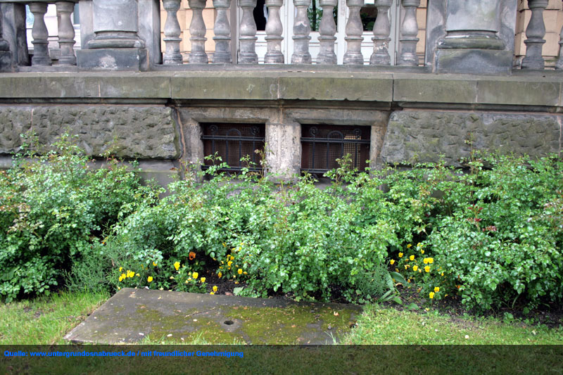 Vor die Luftschutzkellerfenster wurden, sofern keine gesonderte Stahlklappe vorhanden war, wie auf der Skizze dargestellte Betonblöcke als Druckschutz im Falle einer Nahdetonation gesetzt.