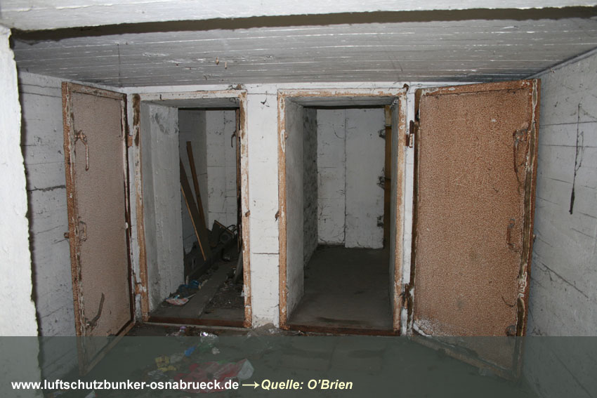 Hinab in den den Keller des Bunkers. Dieser erstreckt sich unter dem Hauptbunkerkörper und als externer Tunnel fort bis zum heutigen Gleis 14 und steht unter Wasser:
