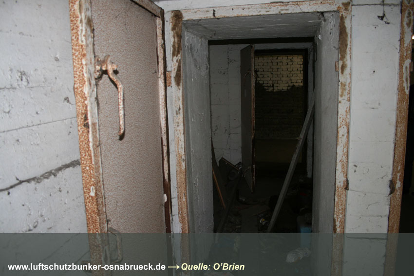 Es geht hinein durch die Schleuse im dritten Stockwerk des Bunkers. Hier an der Oberkante des Hanges, in den der Bunker eingebaut wurde, ist er ebenerdig im dritten Geschoss zu betreten: