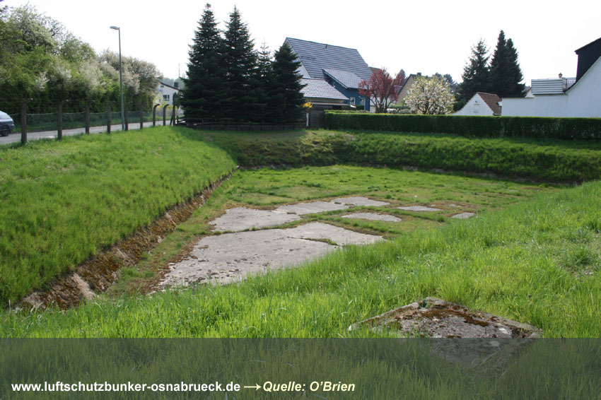 Ein weiterer betonierter Deckungsgraben konnte zugefügt werden: Der sehr gut erhaltene kleine Deckungsgraben am Vaterlandsweg wurde kurz nach unserer Entdeckung leider für ein Neubauvorhaben beseitigt. Wir hatten die Gelegenheit, letzte Fotos zu machen. Dank an www.untergrundosnabrueck.de für die Bereitstellung der Aufnahmen! Hier |