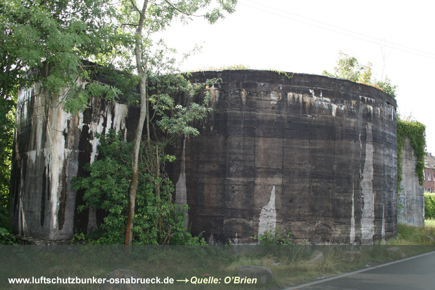 Hinter dem Schnatgang zwischen Wüstenstraße (im Dritten Reich Hans-Rickmers-Straße / 1946 in Wüstenstraße umbenannt) und Kiwittstraße existiert auf den heutigen Grundstücken 10 und 12 direkt an einem Garagenhof ein gemauerter runder Bunker mit zwei gegenüberliegenden Splitterschutzvorbauten. Vielen Dank an Ingo Danielzik für den Hinweis! Es ist bis dato davon auszugehen, dass dieser Rundbunker, der genau die Seitenmaße des LS-Turmes Hoffmeyerplatz hat, auf das bereits vollendete Fundament des bisher nur als geplant verzeichneten LS-Turmes Schnatgang / Hans-Rickmers-Straße gebaut worden ist. Das Bauwerk wurde nach Aufgabe des Vorhabens, einen dreigeschossigen Turm, wie den unweit östlich realisierten LS-Turm Hoffmeyerplatz zu errichten, als gemauerter Rundbunker gebaut, weil wohl kein Beton mehr zur Verfügung stand und in gerade dieser eingeschossigen Form errichtet, weil im zerbombten Stadtteil Wüste 1944 ohnehin nicht mehr viel Bürger wohnten. Ein als LS-Turm geplanter Rundbunker... Bis auf weiteres wird dieses Objekt als Rundbunker auf dem Fundament des minimal begonnenen Turmes Schnatgang der Osnabrücker LS-Turmbaureihe geführt. Sehr viel spricht dafür. Wir werden Sie über die Entwicklung informieren und selbstverständlich die kommenden Tage Fotomaterial einfügen. Hier Bei Virtual Earth: Luftschutzturm Schnatgang Osnabrück (nicht fertig gestellt, an seiner Stelle Rundbunker errichtet) Zur besseren Ansicht in Windrose auf S klicken! Weitere Aufnahmen des äußerst authentisch erhaltenen LS-Kellers in der Martinistraße konnten eingefügt werden: Hier Der Abriss des Reichsbahnrundbunkers 2 in Rheine war für heute angesetzt. Jedoch trat im Laufe des Tages noch keinerlei Abrisstätigkeit ein. Wir berichten weiter.