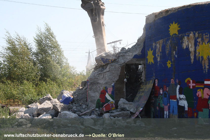 Zwei Aufnahmen von Anfang 1991 während der Abrissmaßnahmen des FLUKO-Bunkers an der Rudolfstraße Osnabrück konnten eingefügt werden. Vielen Dank an Herrn Behrens für die Bereitstellung der Bilder! Hier