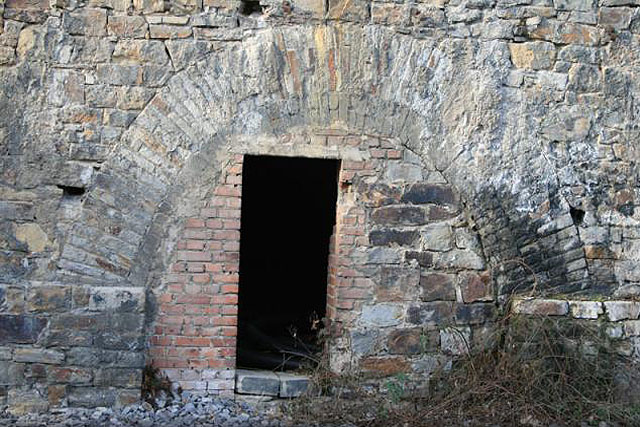 Eine historische Aufnahme des Splitterschutzeinganges mit Druckschutzprellwänden vom Rehlbergstollen Georgsmarienhütte wurde eingefügt: Hier
