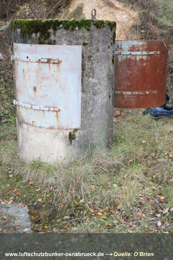 Ein weiterer erhaltener betonierter Deckungsgraben konnte im Stadtgebiet Osnabrück nachgewiesen werden. Er befindet sich im Schinkel und ist relativ gut intakt: Hier Der untere Ring einer ehemaligen Splitterschutzzelle befindet sich noch heute im Bereich Gartlage. Zumindest vermutet werden kann hier eine ursprüngliche Schutzzelle des Fabrikates Klöckner: Hier Die neue Rubrik "Sonstiges - alles rund ums Themenfeld - nicht in jedem Fall LS-bezogen" wurde eingefügt. Hier werden in loser Reihenfolge Objekte, Relikte und alles, was irgendwie mit unserer Thematik zusammenhängt, vorgestellt. Hier