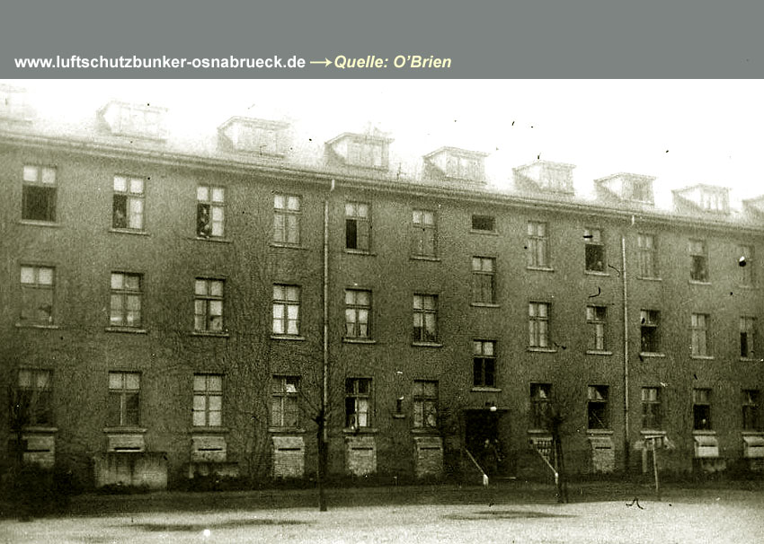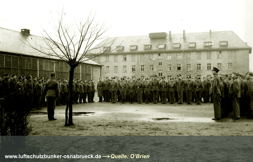 Ein weiteres Foto von einem der Gebäude der Osnabrücker Winkelhausen-Kaserne konnte eingefügt werden. Erkennbar ist ein provisorischer Flakstand auf dem Dach. Hier Aufnahmen der Luftschutzdauerausstellung im ehemaligen LS-Keller der Villa Schlikker in Osnabrück wurden eingefügt. Hier Vielen Dank an www.untergrundosnabrueck.de für die Bereitstellung der Bilder! |