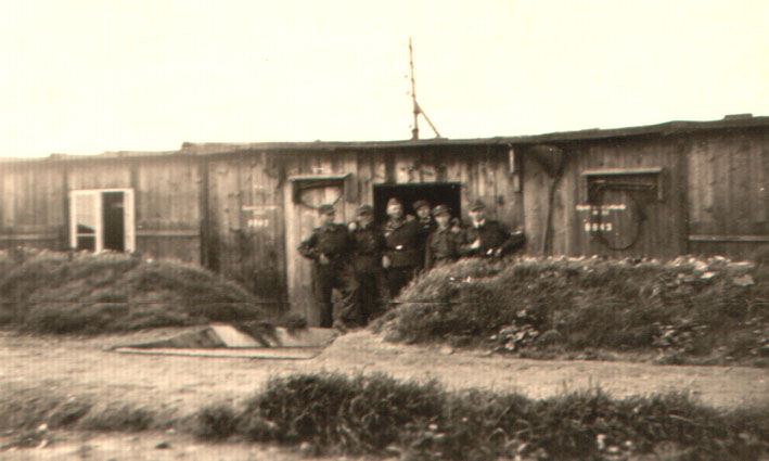 oder acht Luftwaffenhelfer, außerdem eine Schulbaracke.