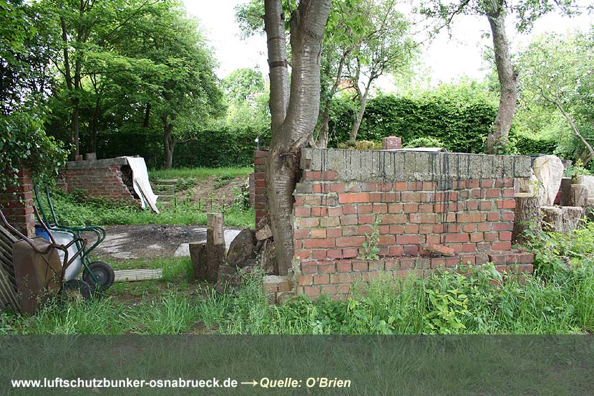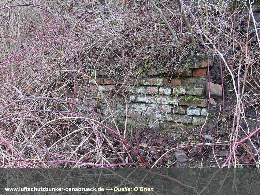 Fußweg zwischen Feldstraße und Karstweg / Garten neben Flakgebäude / Mauer...