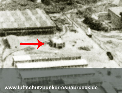 Ein rechteckiger kleiner Hochbunker mit Splitterschutzvorbauten (westlich und östlich) im Werksgelände ("Magnum") am Hasepark. Früher war dies das Gelände der Stahlwerke Klöckner Osnabrück.