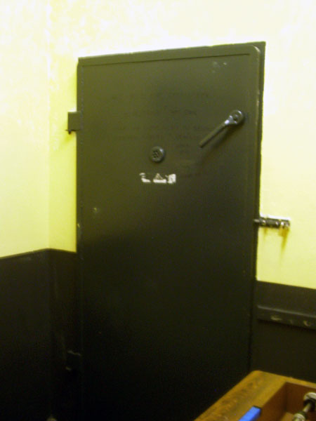 vor einem der Eingänge detonierte und die feste Betonwand eindrückte,