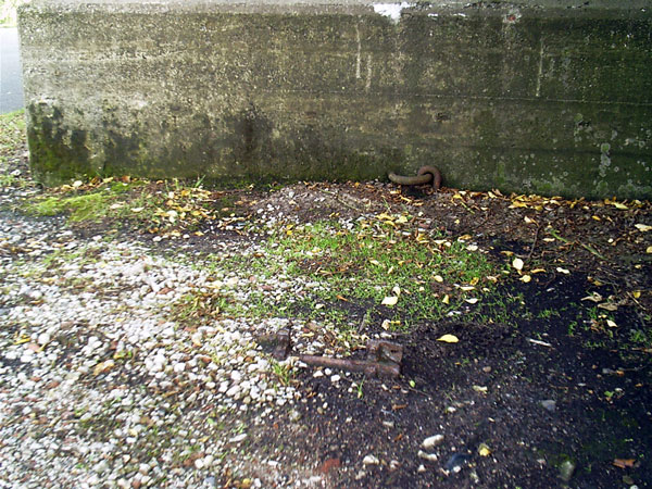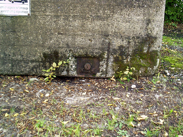 Dies ist wohl einer der imposantesten Bunkerzugänge im Osnabrücker Raum: Eine auf Schienen gelagerte, vier mal vier Meter breite und bis zu 1,4 Meter hohe, massive Stahlbetonplatte versperrt hier den Zugang ins Innere. Was sich darunter befindet, bleibt bis heute ein Rätsel. Leider kennen wir die Kapazität der Anlage nicht. Angeblich sollen sich weitere Zugänge auf dem Werksgelände befinden. Trifft dies zu, scheint es sich um eine recht große Luftschutzanlage zu handeln. Gerüchte, der Bunker besäße sogar einen Zugang zum sagenumwobenen "Gertrudenberger Loch" (Gertrudenberger Höhlen), sind nicht haltbar. Ein Zeitzeuge hat dies eindeutig verneint.