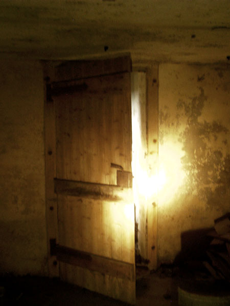 Man kann mittlerweile aufgrund Verwitterung durch den Eingangsbau hindurch sehen...