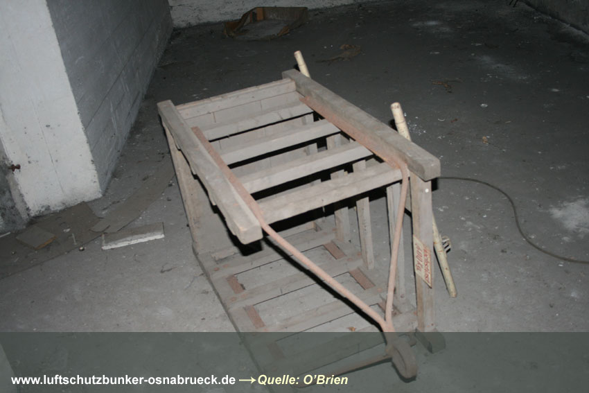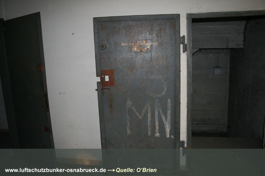 Ein Schriftzug in englisch und deutsch. Trotz Kriegszustand zwischen England und Deutschland wurde in diesem Bunker zweisprachig zu den Mutter- und Kindschutzräumen hingewiesen. Da dies ein Reichsbahnbunker war, sind die Hinweise international lesbar gehalten gewesen: