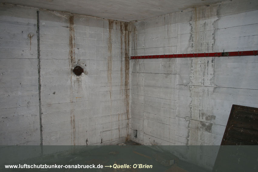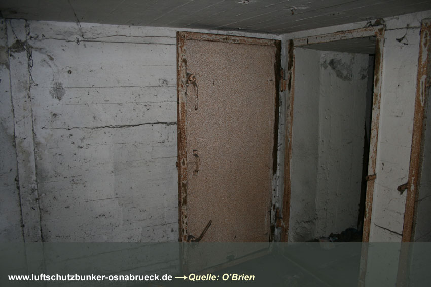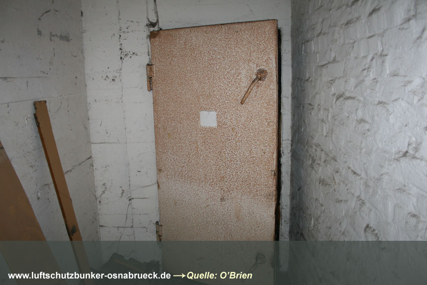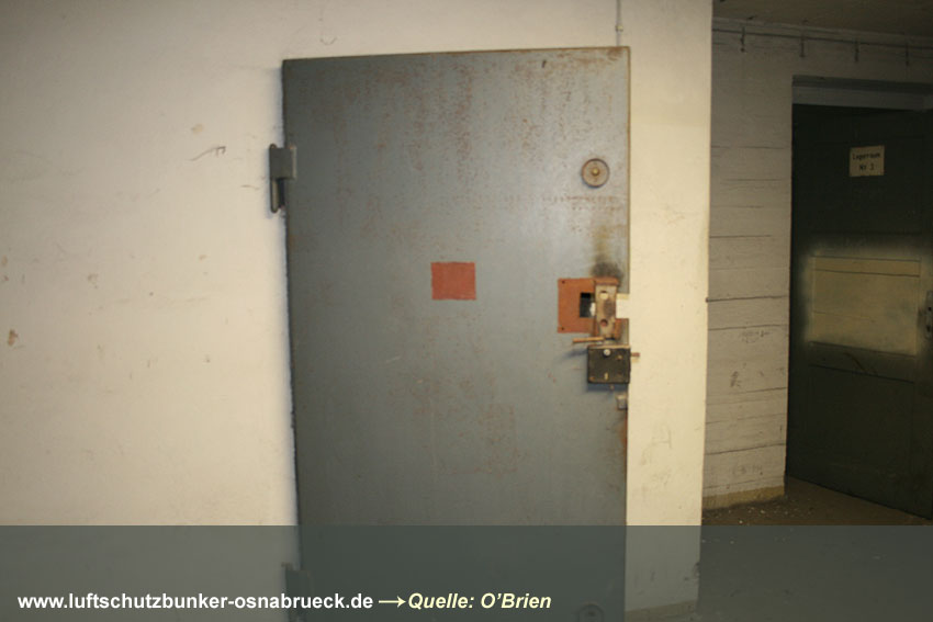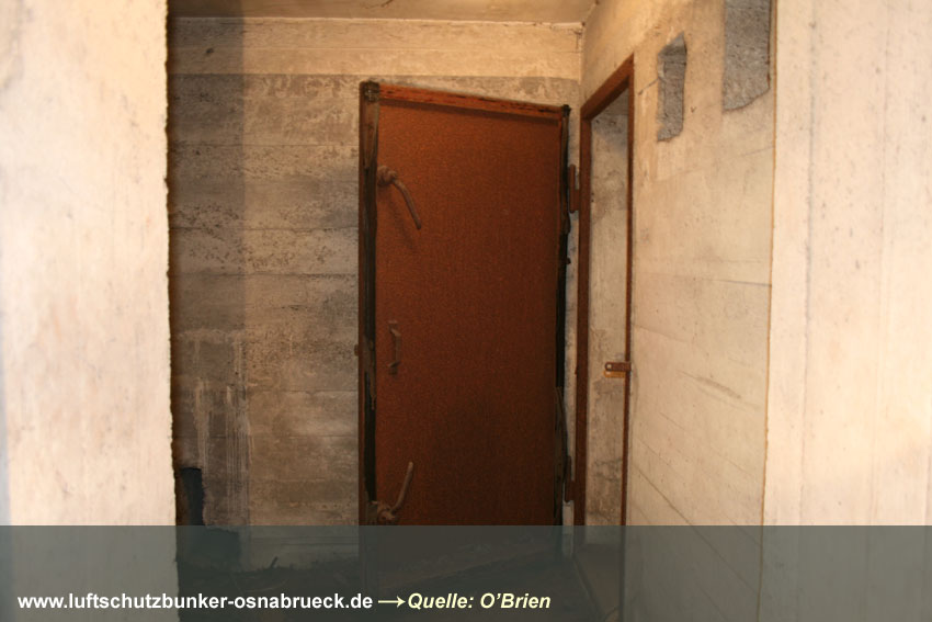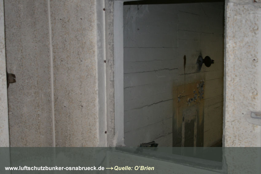 Es geht hinein durch die Schleuse im dritten Stockwerk des Bunkers. Hier an der Oberkante des Hanges, in den der Bunker eingebaut wurde, ist er ebenerdig im dritten Geschoss zu betreten: