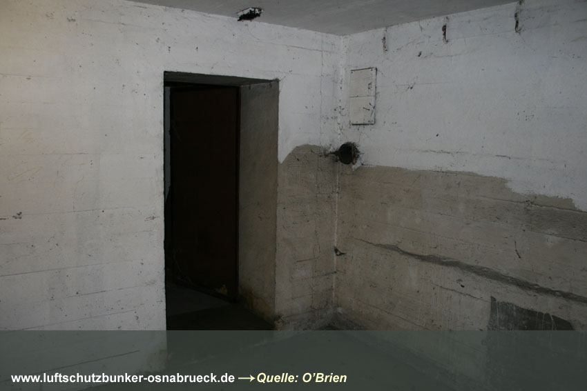 Hinab in den den Keller des Bunkers. Dieser erstreckt sich unter dem Hauptbunkerkörper und als externer Tunnel fort bis zum heutigen Gleis 14 und steht unter Wasser:
