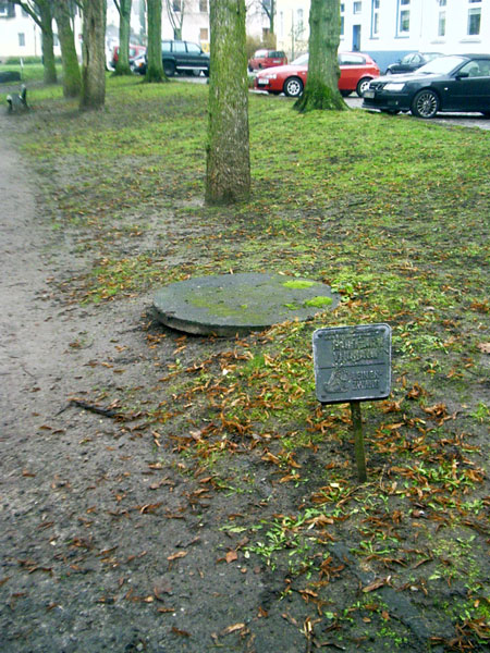 - Der öffentliche betonierte Deckungsgraben am Augustenburger Platz (heute Carl-Herm.-Gosling-Platz) / Augustenburger Straße (200 Schutzplätze) wird bis dato in der Tabelle als unbekannt bezüglich seines Zustandes geführt. Dem Bürgerverein des Katharinenviertels ist über die LS-Anlage leider nichts bekannt, es soll sich bei dem obigen Objekt definitiv nicht um einen (Abwasser-)Kanal handeln. Könnte dies ein ehemaliger Einstieg zum Deckungsgraben sein? Der darunterliegende Hohlraum wurde bis zum Rand mit Zementschlämmen verfüllt. Wer besitzt Infos?