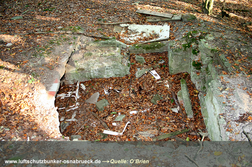 - Bei Ostercappeln befinden sich in einem Waldstück merkwürdige Fundamentreste. Gehörten sie zur Flakstellung Ostercappeln? Sind die erkennbaren Reste vielleicht Teile eines Mannschaftsbunkers / Unterkunftsbunkers oder Leitbunkers? Hinweise eines Lesers zu den Objekten: