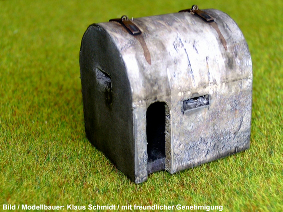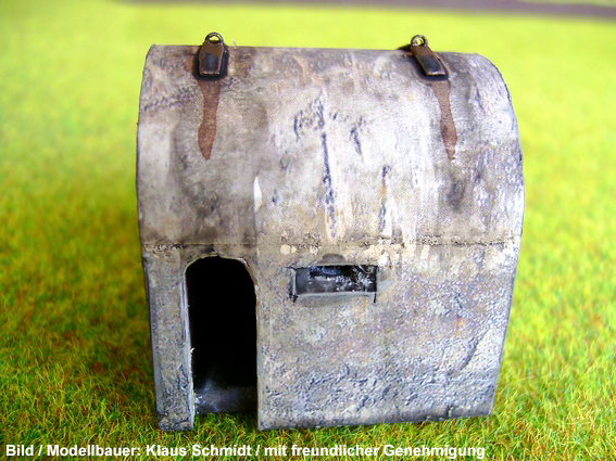 Der Modellbaubogen ist dem Erscheinungsbild des Unterstandes vor seiner Restaurierung im Juli / August / September 2006 nachempfunden.