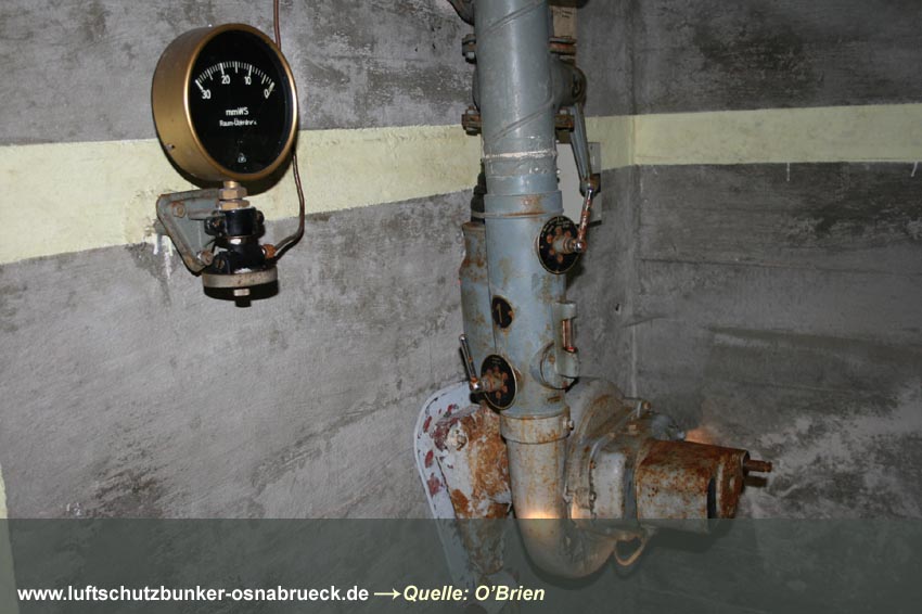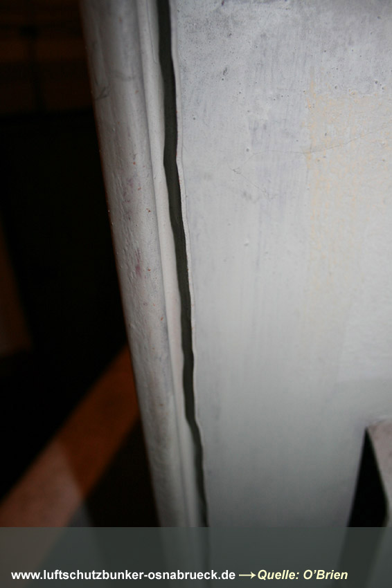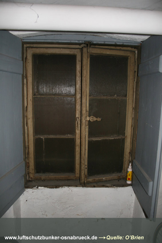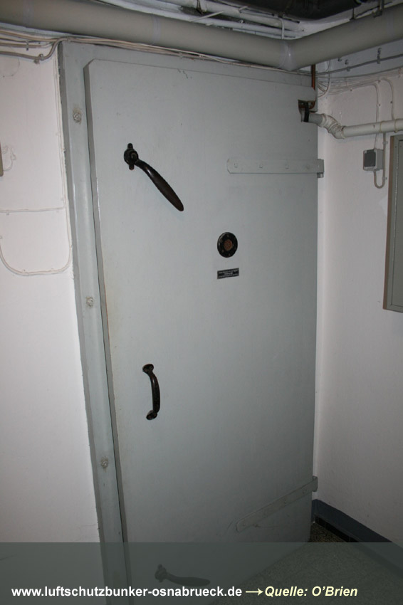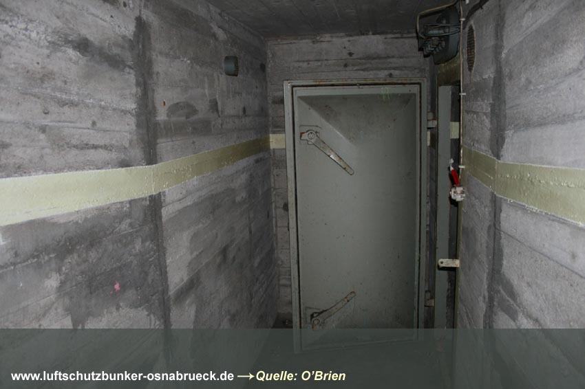 Es handelt sich um einen Kellerraum, welcher in der Mitte durch eine drei-Ziegelstein-starke Wand geteilt wurde. Es wurde ein 1m x 1m großes Quadrat als Sollbruchstelle mit nur 1-lagiger Ziegelsteinreihe belassen. Ein Notausstieg zum "aufbrechen". Eine Gasschutztür mit Dichtungsfalz wurde verbaut. Die innenliegenden Fensterabdeckungen (die Fenster waren Notausstiege) wurden durch einen Sperrbalken verschlossen. Ringsherum wurden an den Abdeckungskanten Dichtungen eingebaut, um den Raum vor Gaseintritt zu sichern.