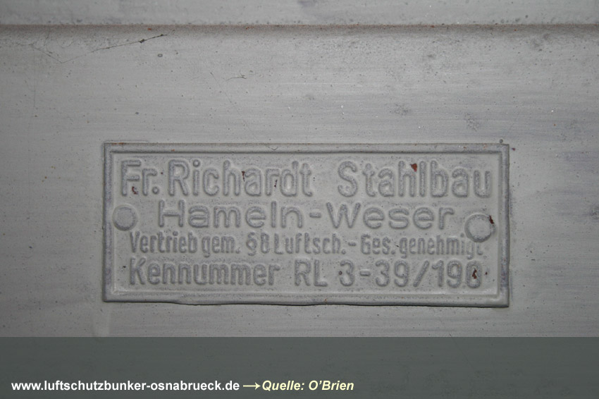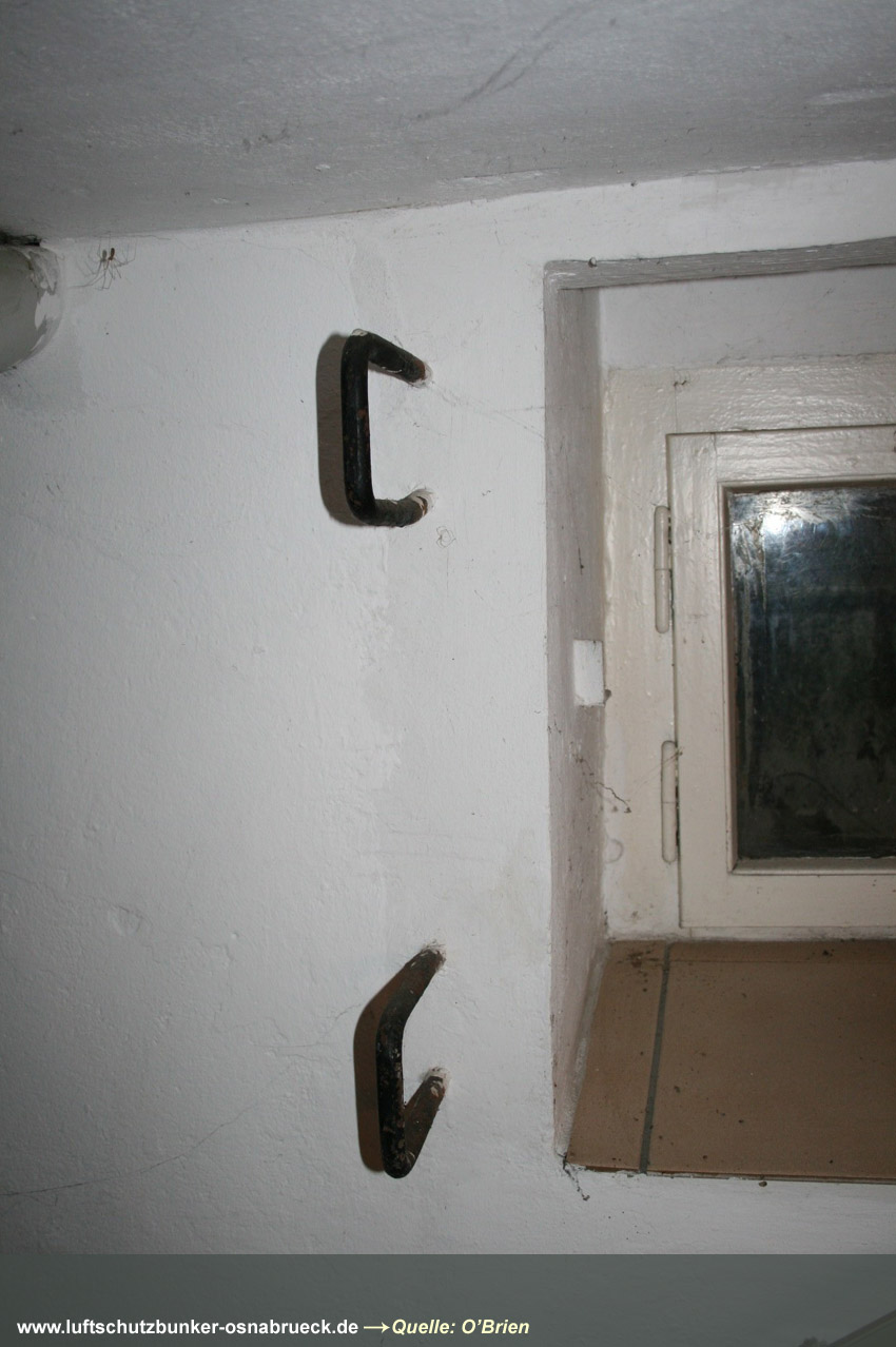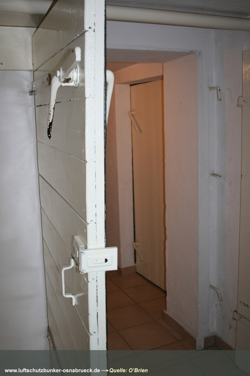 Einfacher, äußerlich nicht sichtbar verbunkerter LS-Keller im Stadtteil Wüste in Osnabrück (in Tabelle nicht aufgelistet). Interessant sind die Steigeisen am Notausstieg und die Türen aus Massivholz. Erhalten